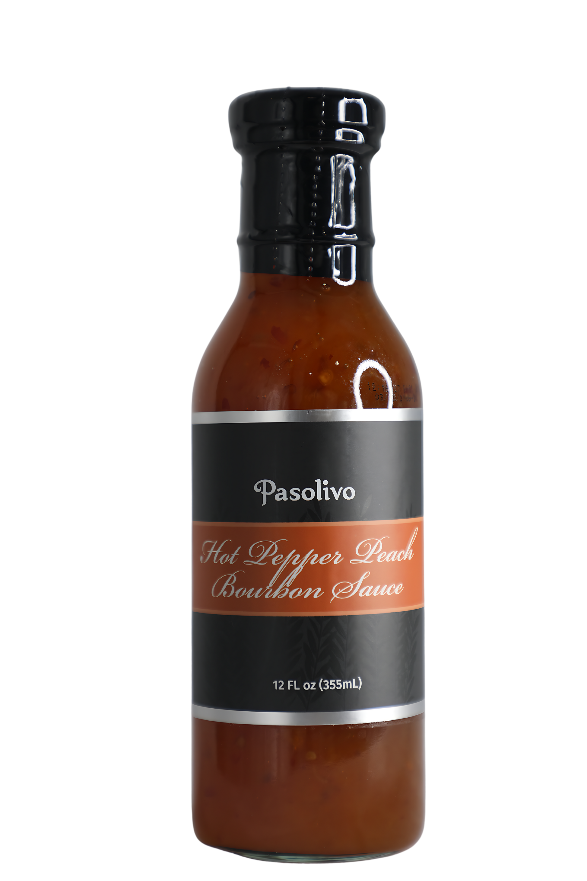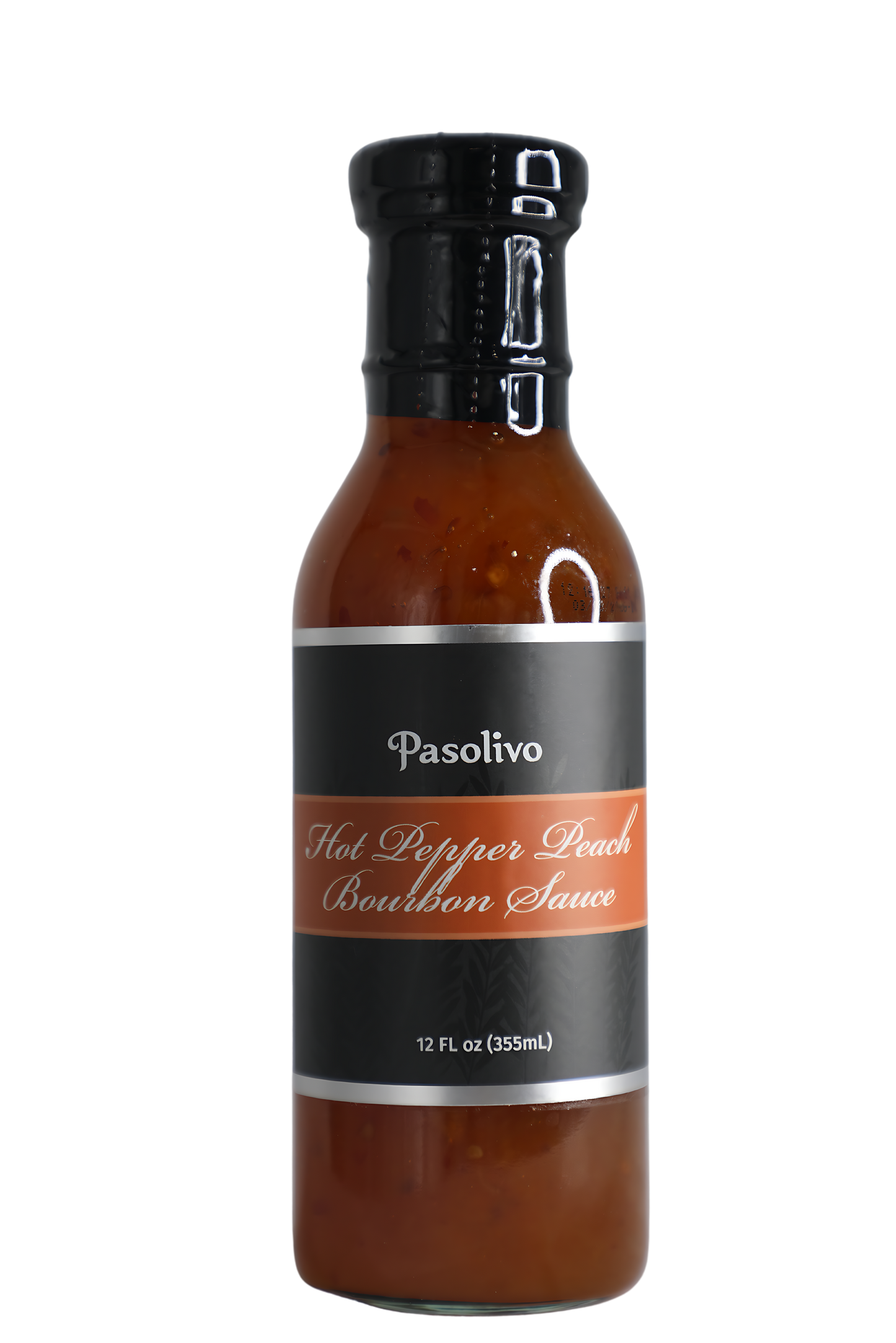 The Hot Pepper Peach Bourbon Sauce is a rich and luxurious sauce created with roasted peaches, apples, and Bourbon and finished with some red peppers to add heat that is irresistible.
