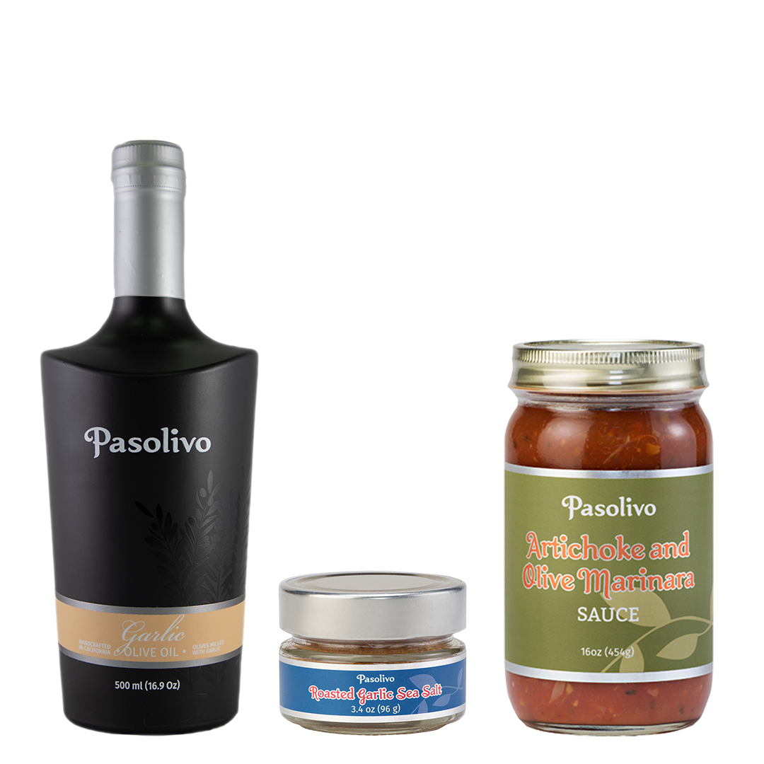 The ultimate comfort dish that the whole family will love. This recipe bundle includes Pasolivo Garlic Olive Oil, Pasolivo Marinara Sauce, and Pasolivo Garlic Sea Salt.